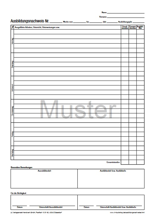 Durch die Ergänzung weiterer Ersatzblocks nehmen die Plastikhefter die Berichte der gesamten Lehrzeit auf. Der Ersatzblock ist inhaltlich identisch mit dem Einlegeblock aus dem Ausbildungsnachweis im Plastikhefter.